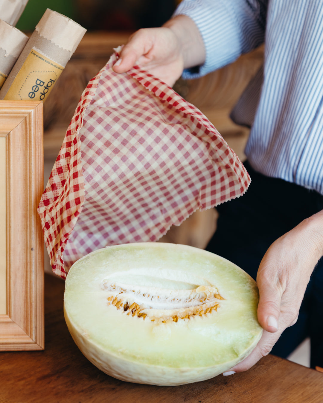 Descubre nuestros envoltorios ecológicos, manufacturados en Chile por mujeres. Confeccionados con tela 100% algodón e impregnados con nuestra exclusiva "Pócima Bee", estos envoltorios son la clave para mantener la frescura de tus alimentos gracias a sus propiedades antisépticas.